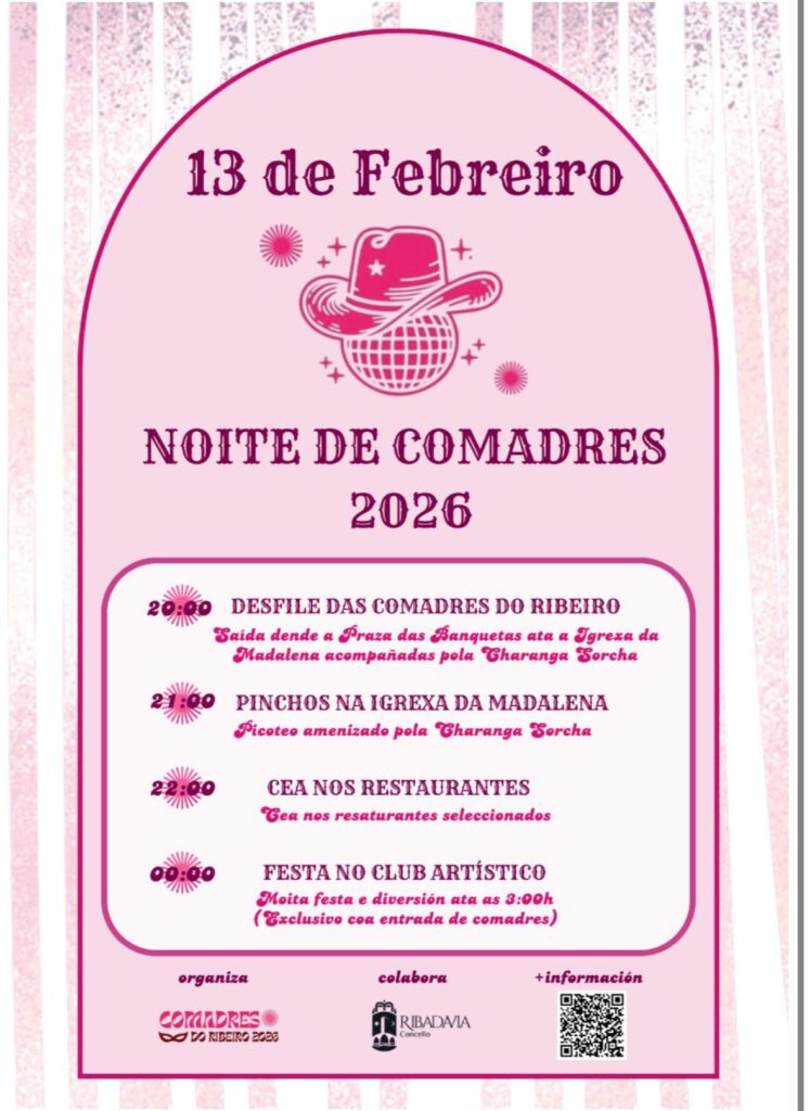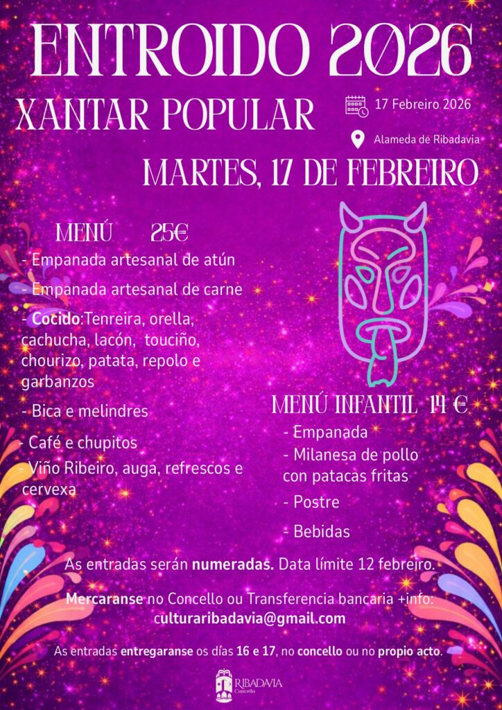 Desde el jueves 5 de febrero hasta el sábado 21 de febrero, el municipio de Ribadavia celebrará la tradicional fiesta del Entroido 2026. Durante estos días, en los que la tradición manda disfrazarse y salir a la calle, vecinos y visitantes podrán disfrutar de una completa programación festiva que llenará de música, color y animación las calles de la villa.