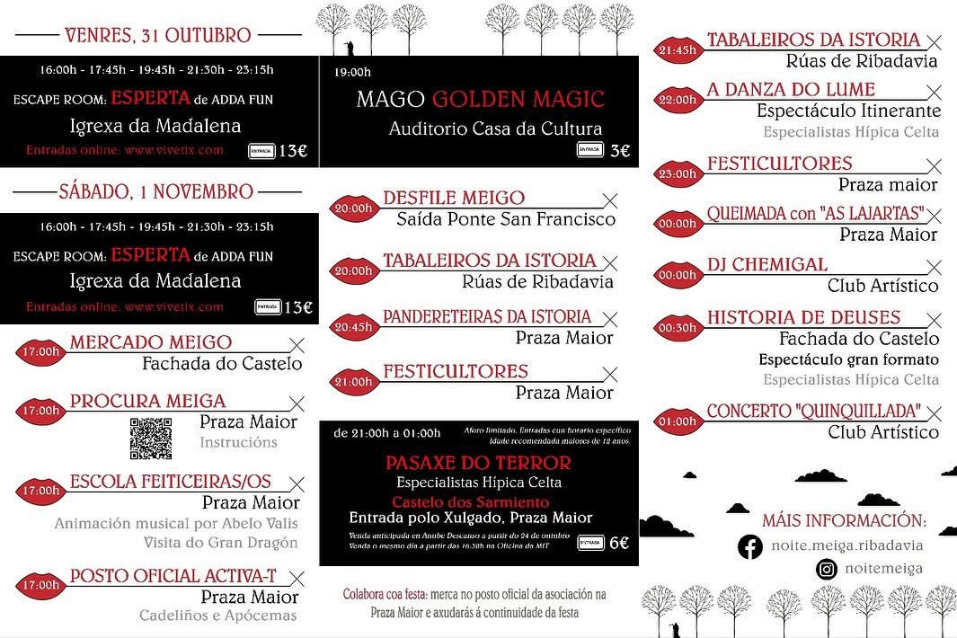 Durante el fin de semana del 1 y 2 de noviembre, Ribadavia se transformará en un lugar mágico con la celebración de la Noite Meiga, un evento que homenajea las tradiciones del antiguo Samaín. Esta festividad, llena de encanto y misterio, ofrecerá una experiencia única para toda la familia.